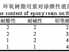 2.6環(huán)氧樹脂用量對涂膜性能的影響表3是環(huán)氧樹脂用量對涂膜性能的影響.從表3中可以看出當(dāng)環(huán)氧樹脂用量增加.涂膜的各項(xiàng)性能是增加的.各項(xiàng)性能達(dá)到最佳值.能夠滿足鋁箔的防腐要求.同...
